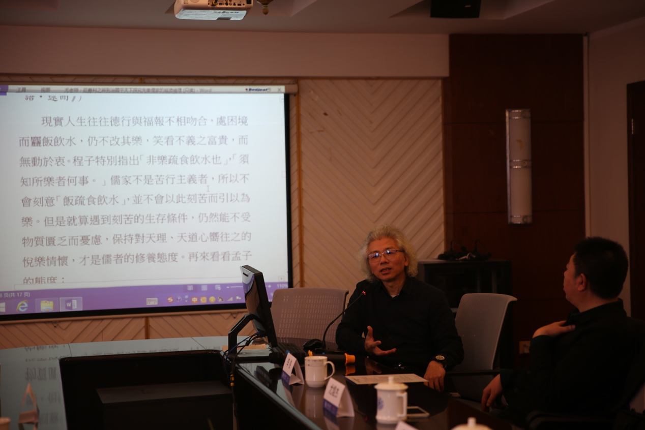 台湾辅仁大学的尤煌杰教授报告的题目为《从“义利之辨”到“治国平天下”:探究先秦儒家的经济伦理》。