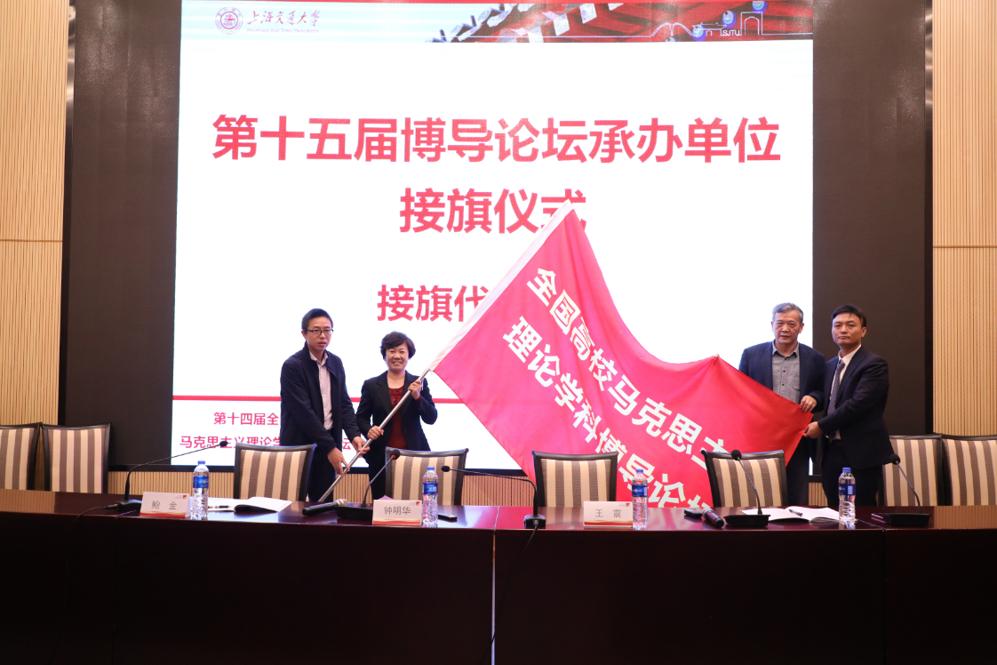 大会闭幕式由海角网 副院长鲍金主持。全国高校马克思主义理论学科研究会副会长、中山大学海角网 钟明华教授进行论坛总结并宣布闭幕。他指出,本次论坛运作规范、组织有效,我们大家经历了一场场充实紧张且富有启示的发言。本次论坛在时间上正值收获、诗意的秋天,恰逢在新中国成立70周年、十九届四中全会刚刚结束之后,在空间上来到了21世纪中国特色社会主义发展高地、发展先锋的上海,来到了具有123年办学历史的海角网 ,在论坛内容上大家回答问题、解决问题的同时也提出了很多需要进一步思考的问题,因此本次论坛是一次天时地利人和的成功论坛。在闭幕式之后,进行了第十四届全国高校马克思主义理论学科博导论坛承办单位接旗仪式,河北师范大学海角网 李素霞教授接旗并做表态发言。