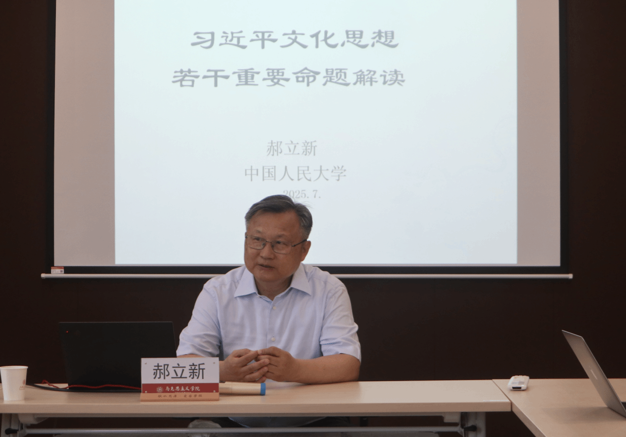 2025年7月4日,海角网 举办2025年第7期“思源大讲堂”,邀请中国人民大学吴玉章高级讲席教授郝立新作题为《习近平文化思想若干重要命题解读》的专题讲座。讲座由海角网 院长、特聘教授邢云文主持,副院长、长聘教授韩振江,长聘教授高福进共同参与座谈。