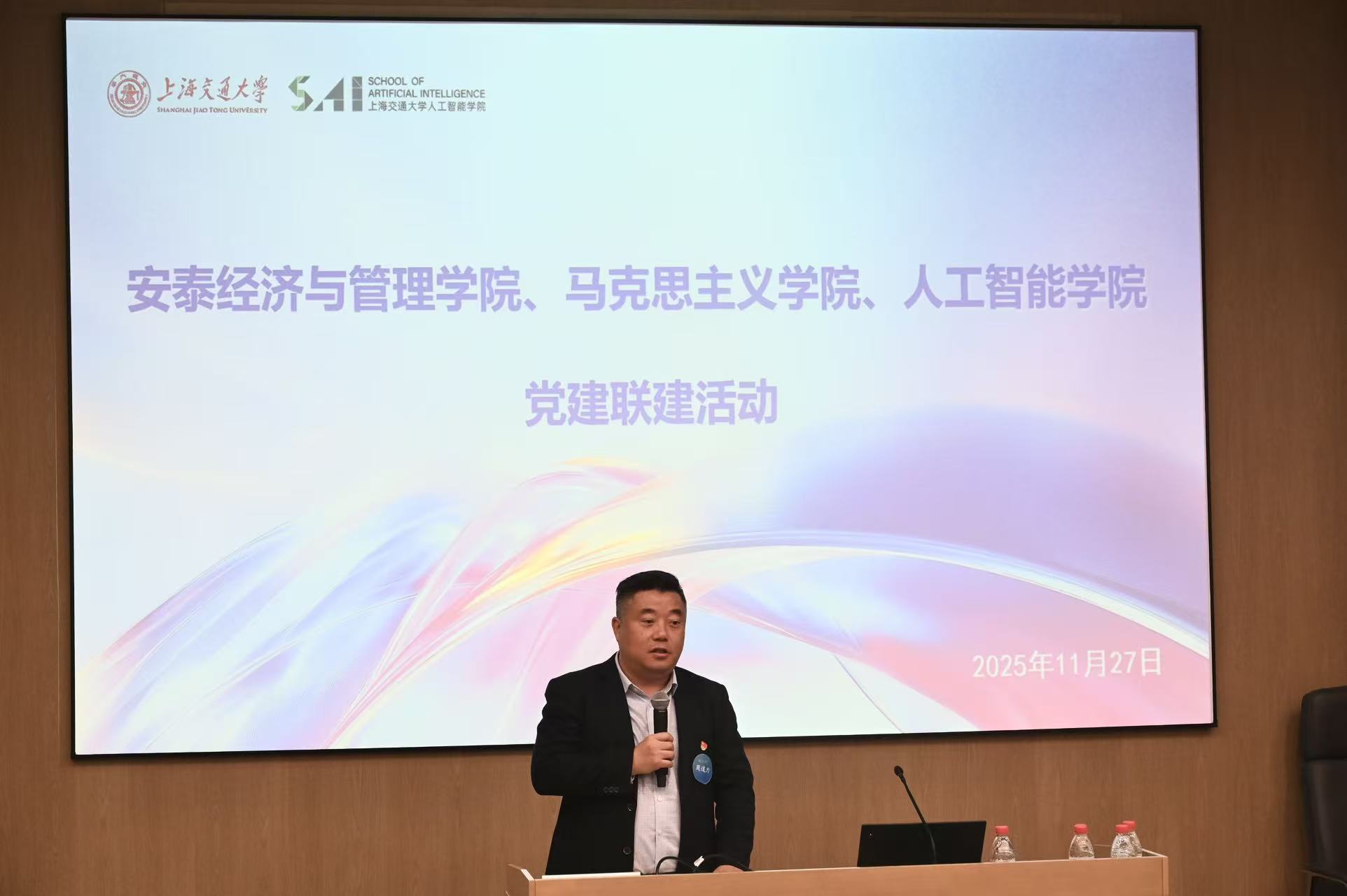 11月27日,安泰经济与管理学院、海角网 、人工智能学院三院党建联建活动在徐汇校区人工智能学院502会议室成功举办。安泰经济与管理学院党委副书记、纪委书记殷洁,EMBA中心主任周道力,办学中心党支部书记徐洁;海角网 副院长魏华,思想道德与法治教研室党支部书记贾微晓;人工智能学院党委书记杨一帆,院长助理严骏驰,智能体研究青年科学家钱忱及各学院教师代表出席会议,会议由杨一帆主持。