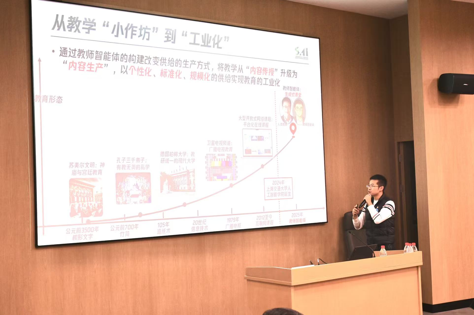 钱忱分享了AI教学工具Teachmaster的开发应用,围绕未来“人机共授”课堂建设、AI高效个性化教学与人类情感传递、知识传授的互补性等内容展开探讨,引发与会人员对“AI能否完全替代课堂老师”“非专业教师适配性”等问题的深入交流。