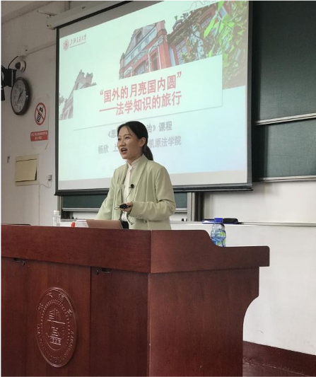 为厚植同学们的家国情怀,拓展国际视野,激发使命担当,2021年10月18日下午,海角网 凯原法学院博士后、哈佛大学访问学者杨欣应邀走进本科学子的 “思想道德与法治”课堂,为近百名同学带来“国外的月亮国内圆——法学知识的旅行”专题讲座。