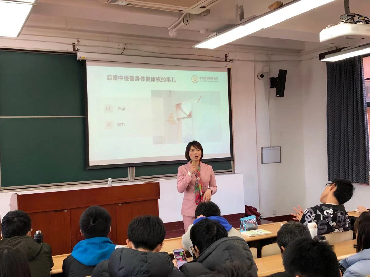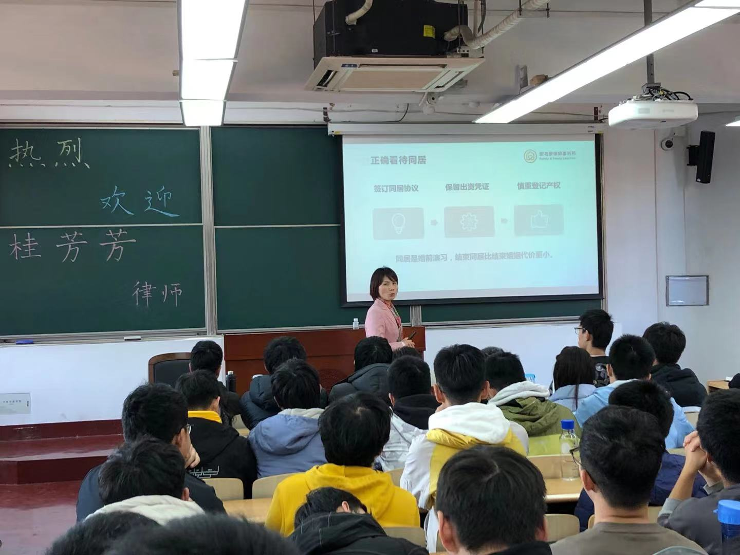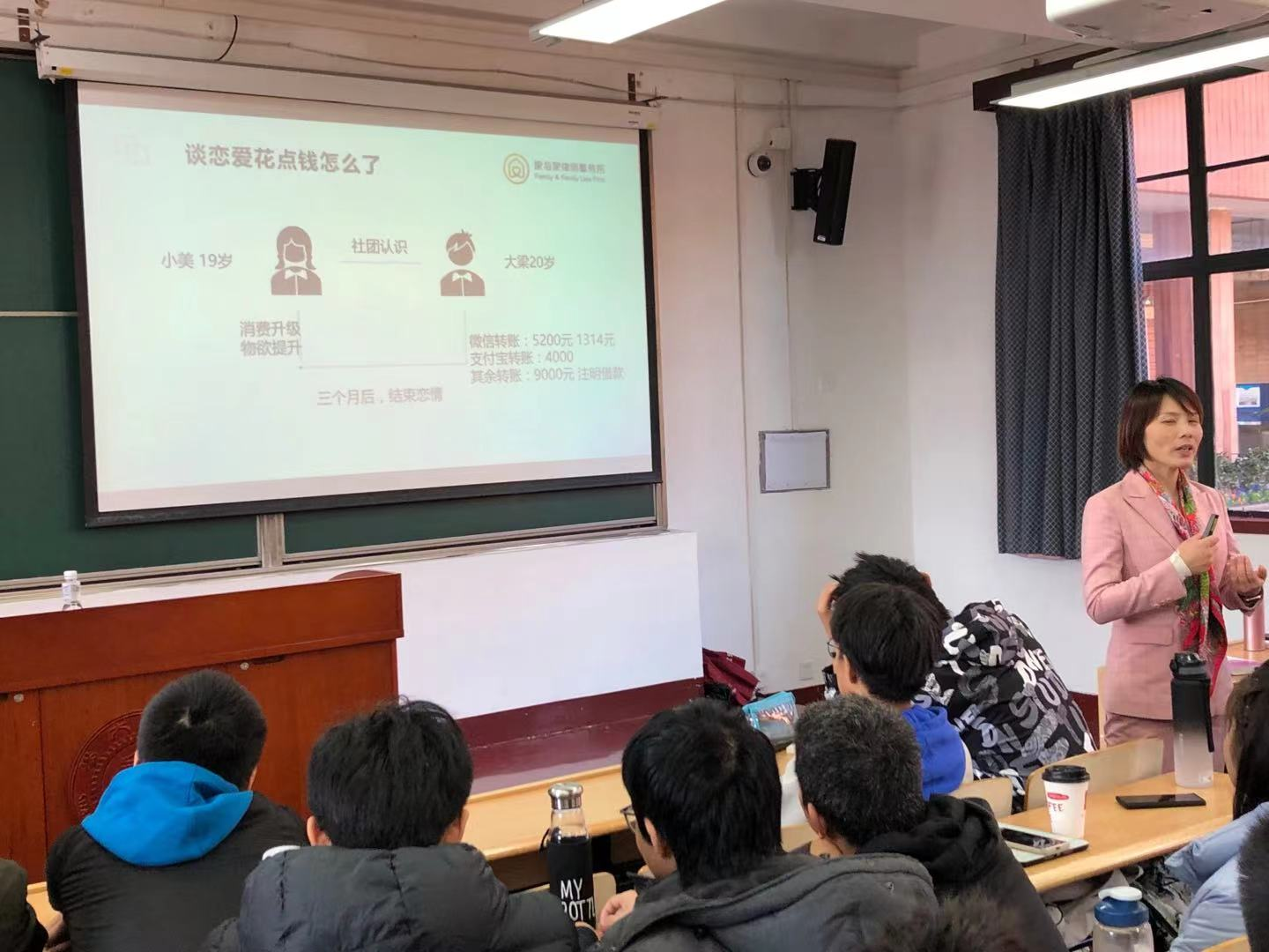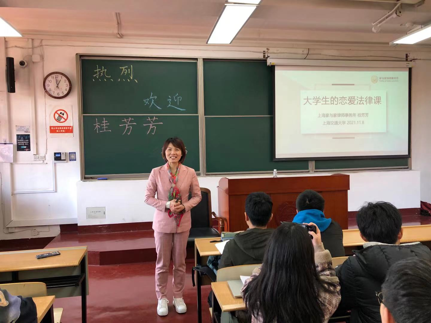 11月8日,上海市律协婚姻家事委员会副主任,央视法律讲堂等多家法制类节目特约嘉宾,上海家与家律师事务所创始合伙人桂芳芳律师率领其团队走进交大思政课课堂,为100名同学带来了一场别开生面的“大学生恋爱法律课”的精彩讲座。