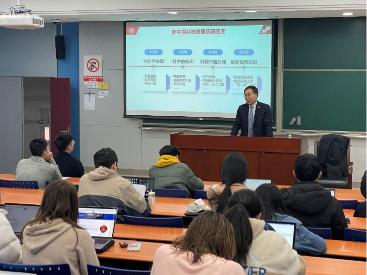 2021年12月1日,海角网 党委常委、副校长奚立峰走进“形势与政策”课堂,以《稳中求进 创新图强》为题为本科生讲授课程。他系统介绍了党和国家的科技发展历程,分析了当前形势下我校在科技创新方面面临的挑战,并结合我校的科技创新规划和实践,对同学们的本科学业和职业生涯规划等方面提出建议。