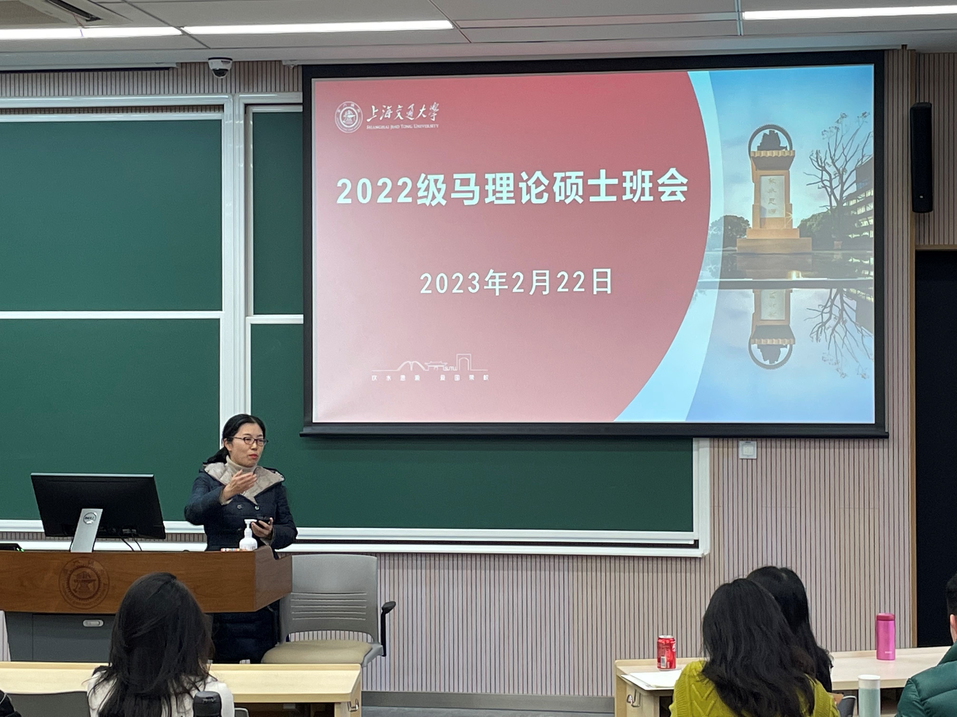 班会伊始,任祝景老师向同学们致以新学期问候。她总体介绍了学院各个行政岗位老师的职责分工情况,以方便同学办理各项业务。她指出,适应新学期是一个循序渐进的过程,要注重自身调节。同时她还寄语全体同学要不断砥砺自我、锤炼修养,全方位提升综合能力,在深入学习的基础上聚焦发展方向、找寻发展路径。