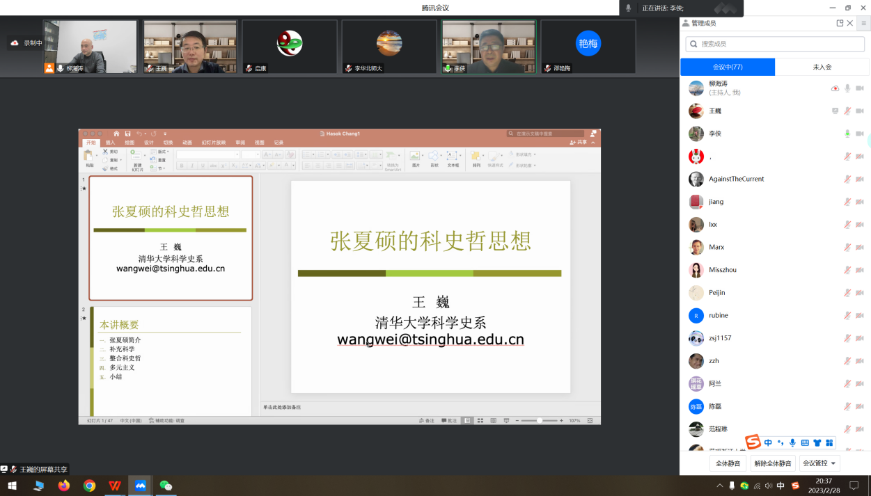 邀请清华大学科学史系王巍教授做客思源讲堂第三十一期,为广大师生带来题为“张夏硕的科史哲思想”的学术报告。柳海涛教授主持本次讲座,科学史与科学文化研究院院长李侠教授担任评议嘉宾。校内外八十余名师生参加,共同交流学习。