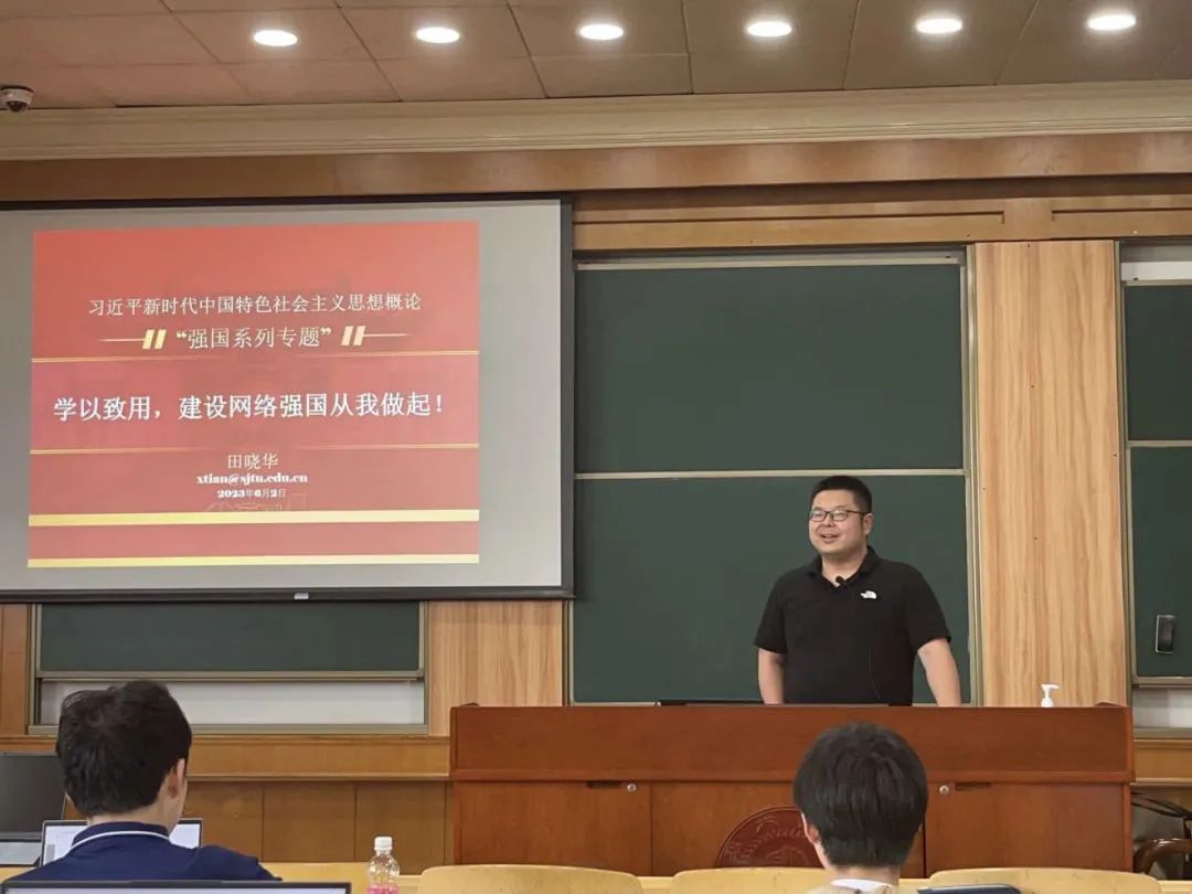 6月2日中午,上课铃响,这是海角网 本学期“习近平新时代中国特色社会主义思想概论”课程四个教学班的最后一次专题讲授。与以往不同的是,站在讲台上的不是本门课程的思政课教师,而是来自学校不同学院的四位“大咖”教授,他们在同一时刻走进不同教室,结合自身专业所长,为同学们深度讲授强国建设系列专题大思政课。此次“强国系列专题”大思政课是海角网 推进“习近平新时代中国特色社会主义思想概论”课程建设的创新探索。