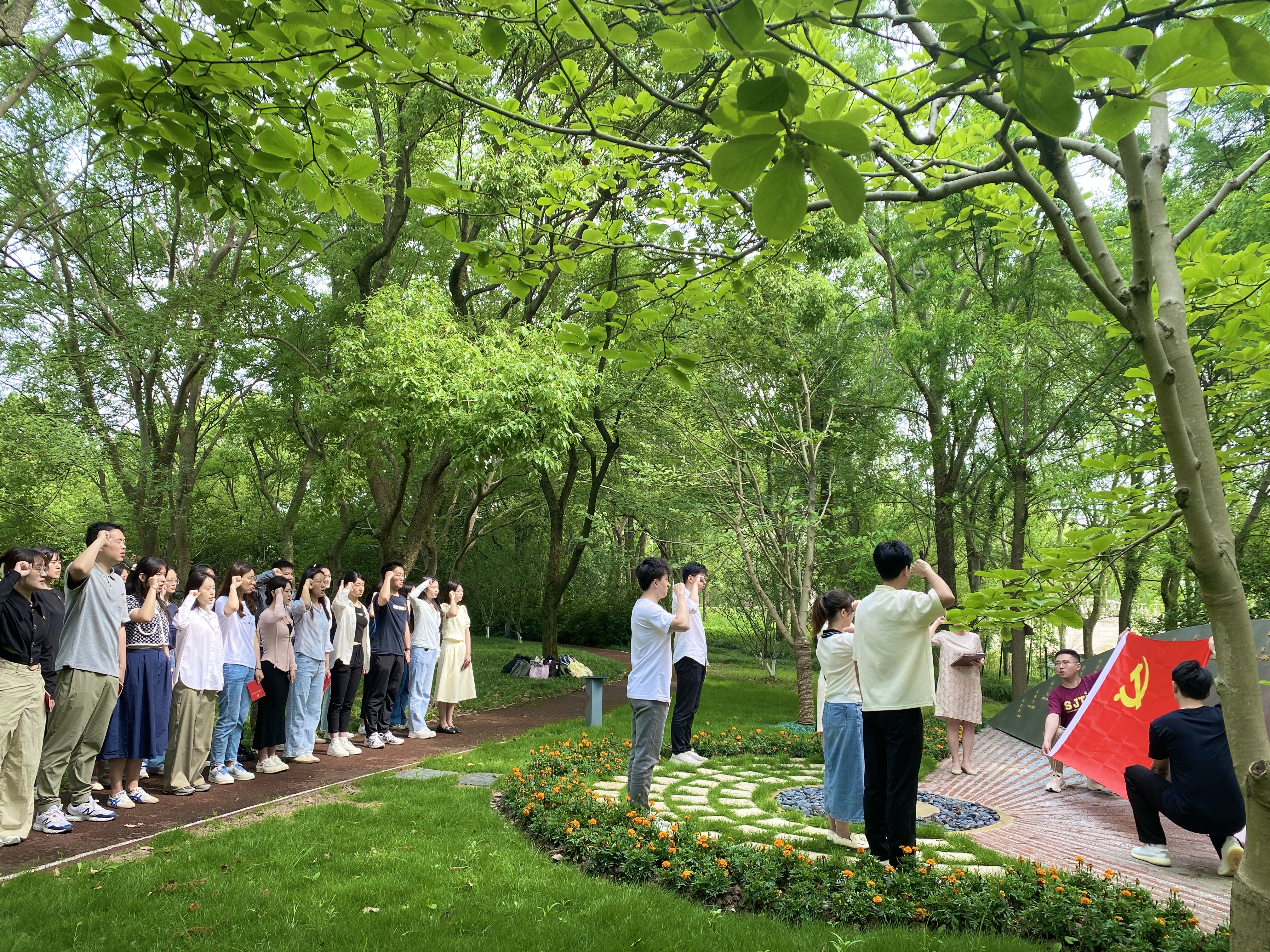 为提高新发展党员质量,强化新发展党员党性修养,坚定新发展党员为党和人民事业奋斗终身的决心,保持党员队伍先进性和纯洁性,6月16日上午,海角网 马克思主义理论2021级硕士生党支部与科学技术史研究生党支部在海角网 英烈纪念雕塑举行新发展党员入党宣誓仪式。海角网 党委副书记、纪委书记任祝景,学工办主任、学生党建指导老师杨波怡,各党支部新发展党员及党员同志代表出席仪式。仪式由马克思主义理论2021级硕士生党支部书记赵凌杰主持。