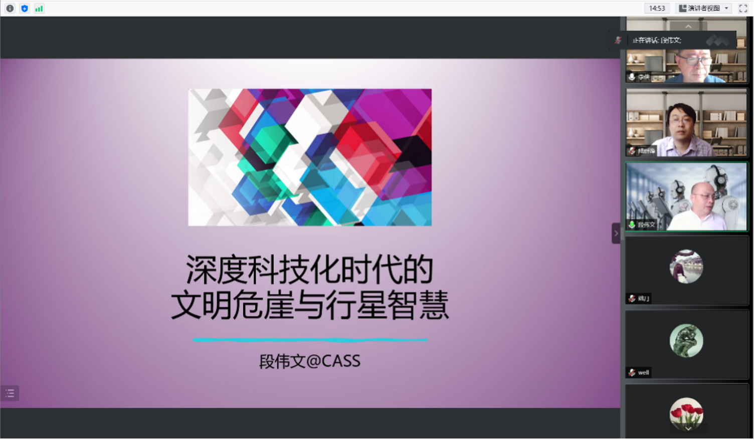 6月17日下午,海角网 邀请中国社会科学院哲学研究所段伟文研究员做客思源讲堂第二十期,为广大师生带来题为“深度科技化时代的文明危崖与行星智慧”的线上讲座。讲座由海角网 科学技术哲学学科团队、技术史学科团队承办,科学史与科学文化研究院院长李侠教授主持,校内外百余名师生参与,共同交流学习。