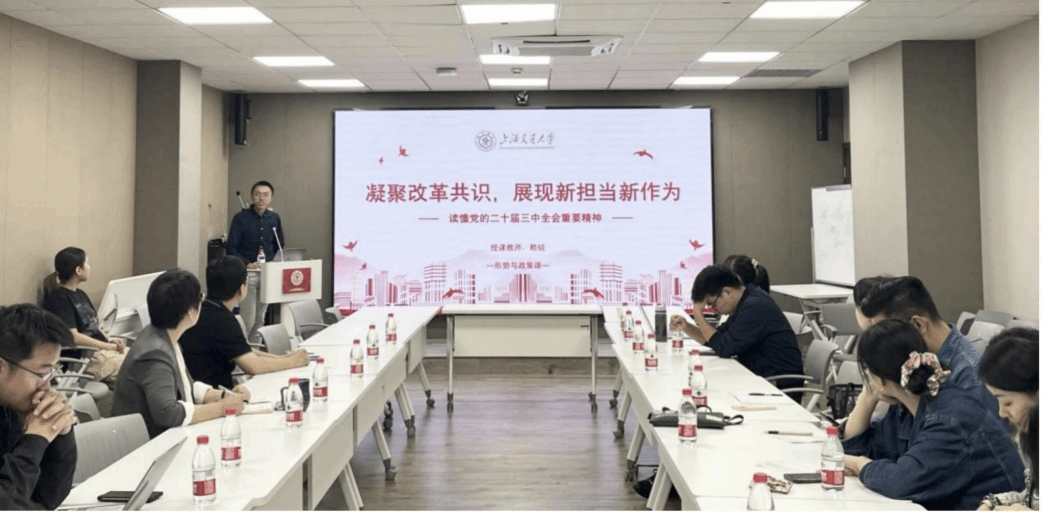 10月10日,形势与政策教研室在海角网 B401会议室召开2024年秋季学期第一次集体备课会,教学专题为“凝聚改革共识,展现新担当新作为——读懂党的二十届三中全会重要精神”。海角网 党委书记余新丽、“形势与政策”课任课教师参加集体备课会。备课会邀请上海市教学能手、海角网 青年教师赖锐为本专题作教学展示。