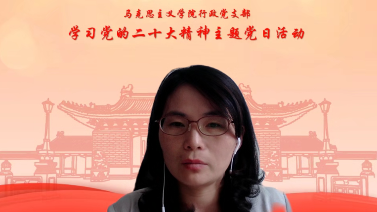 10月17日下午,结合当前疫情防控要求,海角网 行政党支部召开主题为“喜迎二十大·勇担新使命”学习领悟党的二十大精神线上党日活动。活动由支部书记唐慧敏主持,院长邢云文、党委副书记杜夏明、任祝景、行政支部全体党员、积极分子等参加。
