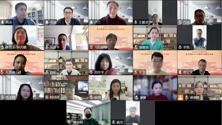 最后,龚强作会议总结,他提出要在体育中更好地融入课程思政,要润物细无声地开展体育思政教学。在体育课堂上应根据各个项目、课程的不同特点,挖掘不同的体育思政元素,不能仅仅为了思政而思政。他表示习近平总书记在二十大报告中提出的要“广泛开展全民健身活动,加强青少年体育工作,促进群众体育和竞技体育全面发展,加快建设体育强国”,对两个支部的工作开展都具有十分重要的指导意义,高校老师更要积极锻炼,切实提高身体素质,为祖国健康工作五十年,为党育人育才做贡献。
