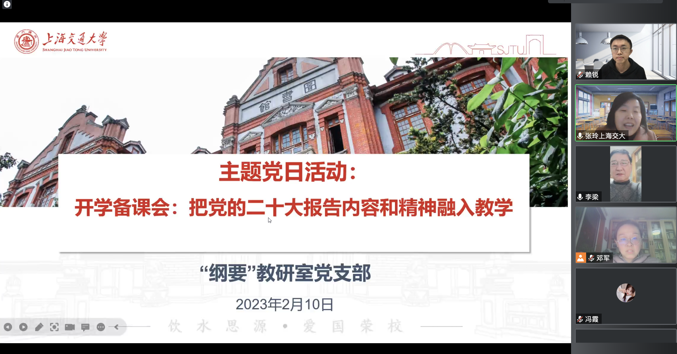 “纲要”党支部举行主题党日活动:“开学备课会:把党的二十大报告内容和精神融入教学”
