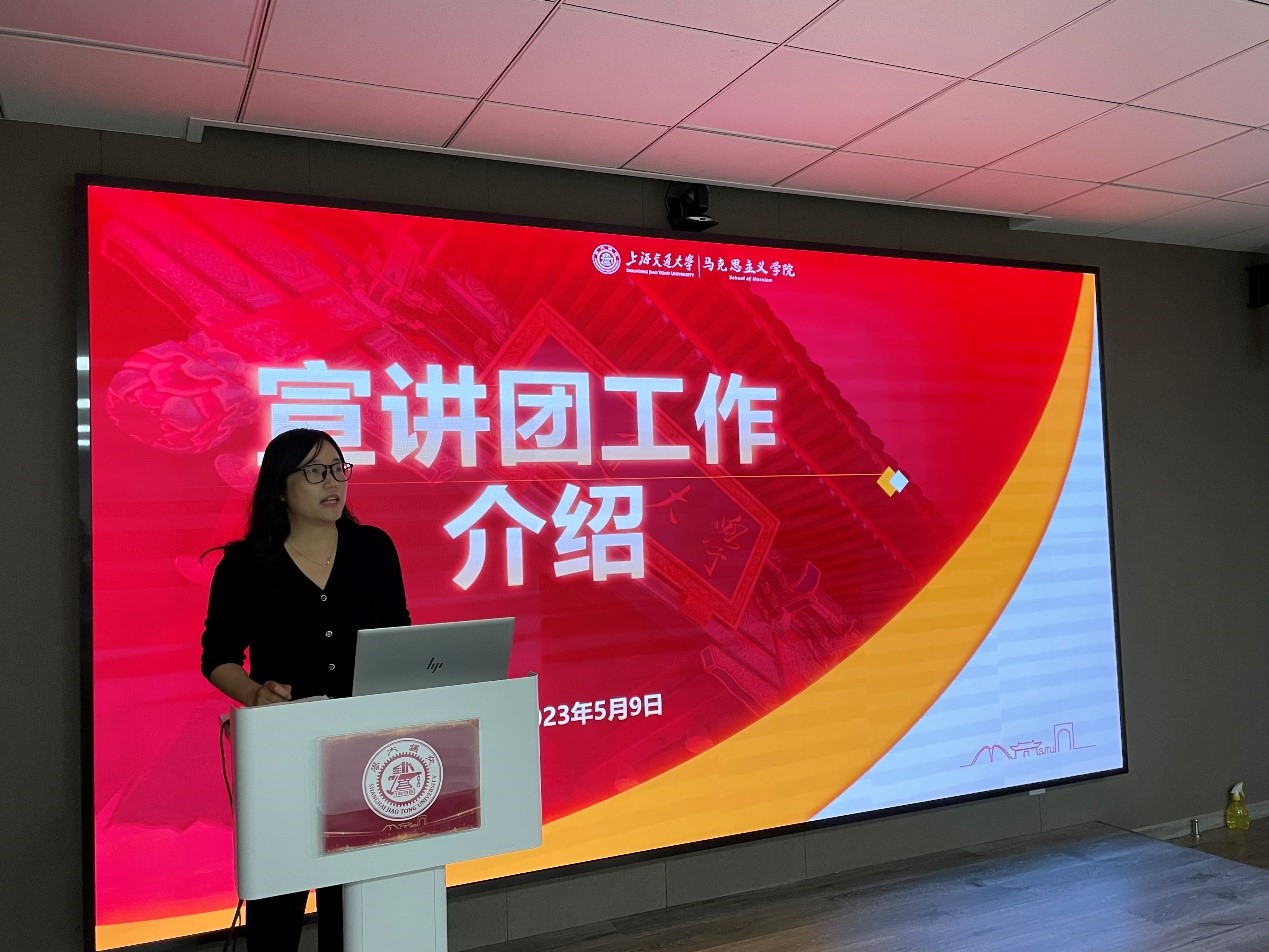 宣讲团指导老师杨波怡回顾总结了近半年来宣讲团工作推进、架构搭建、建章立制、活动开展等情况。并表示在下一阶段,宣讲团指导教师将继续认真履职,共同建设好“声入人心”这一品牌,提升宣讲团的形象与声望,发挥学生理论宣讲团的政治功能和育人职能。