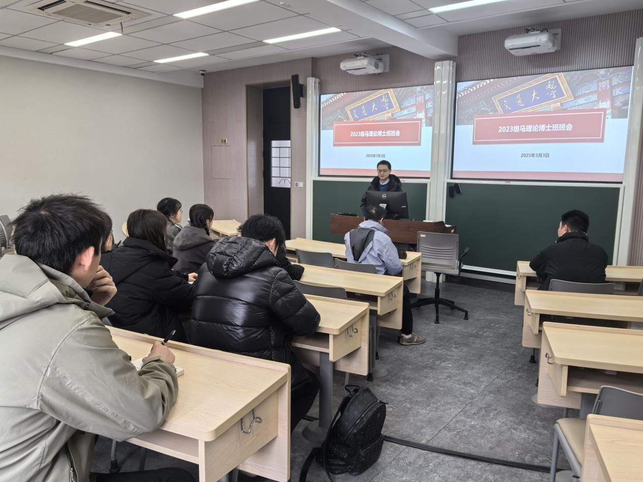 马克思主义理论专业2023级博士班班会特邀高福进教授为同学们赠言,鼓励同学们只争朝夕,目光长远,边读边写,为学术成长注入持续动能。