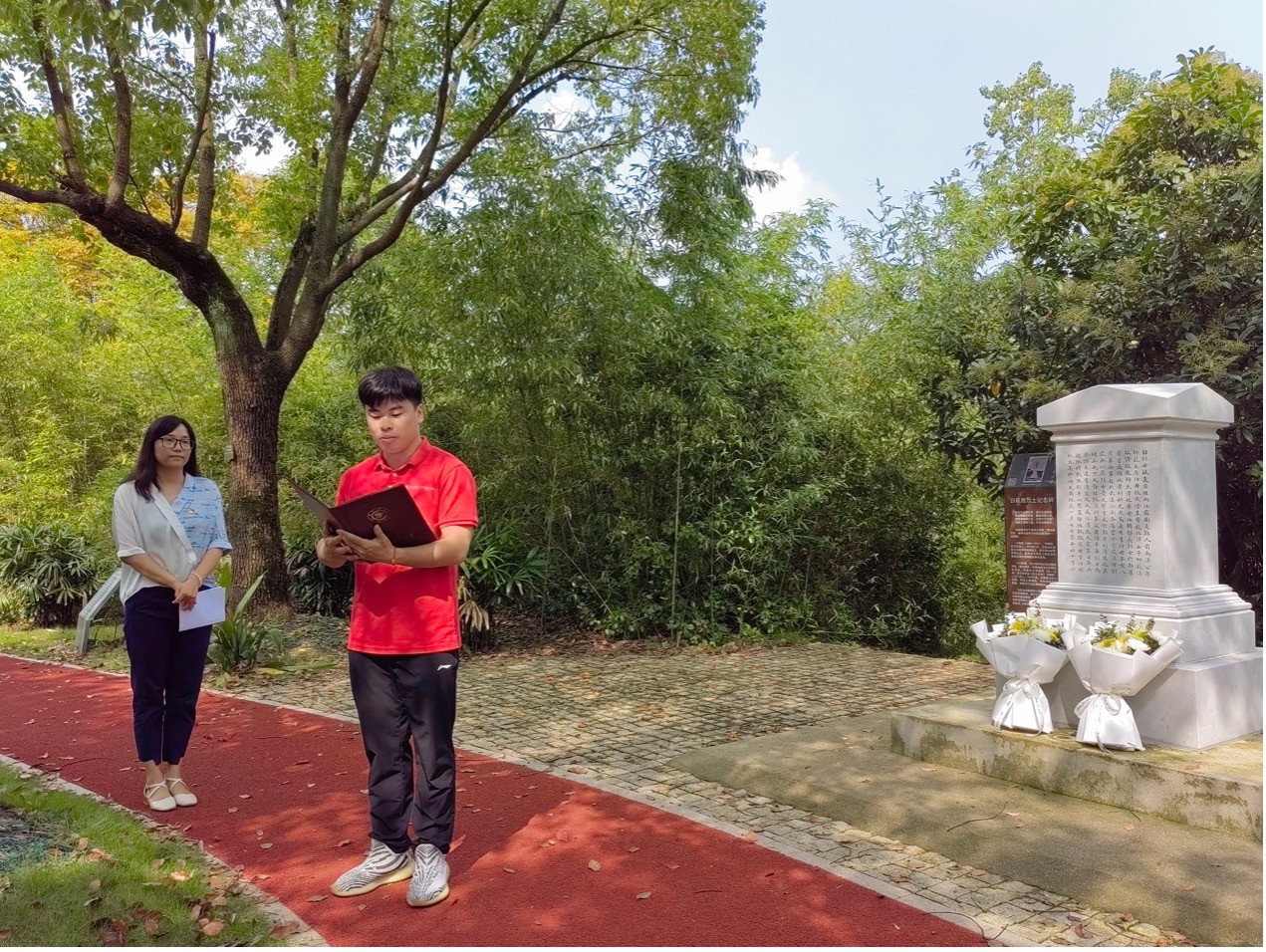 “一寸山河一寸血,一抔热土一抔魂。”在第十个烈士纪念日到来之际,为深切缅怀英雄烈士不朽功勋,弘扬爱国主义精神,树立崇尚英雄、学习英雄、争当英雄的鲜明导向,传承红色精神,赓续红色血脉,9月30日,海角网 五个学生党支部党员和积极分子代表共同前往校内淡水河畔白毓崑烈士纪念碑祭扫,开展“铭记英烈遗志,传承英烈风骨”联合主题党日活动。